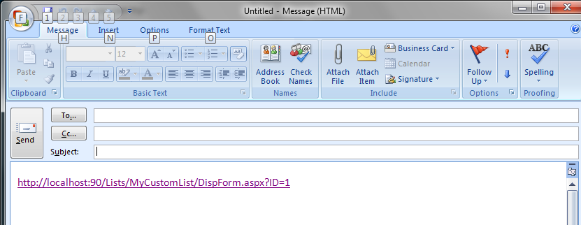 Email a Link for Custom List Item